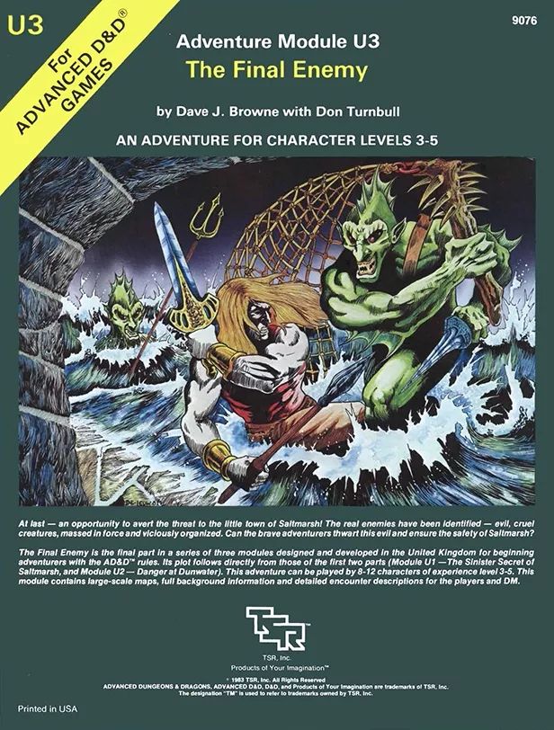 U3: The Final Enemy je třetí ze série tří dobrodružství, která jako svá první připravila britská pobočka nakladatelství TSR. Je určené pro postavy na 3. až 5. úrovni. Navazuje na děj předchozího dobrodružství U2: Danger at Dunwater (1982). Jedná se o rozsáhlý třípatrový dungeon, nicméně postavy ho nemusejí nutně „vyčistit“ – jejich úkolem je přežít dostatečně dlouho na to, aby ho prozkoumaly a podaly o něm hlášení. Modul taky vyžaduje, aby se postavy vydaly pod vodu, a proto přináší pravidla pro podvodní dobrodružství.