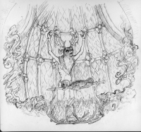 Stezka cti je „sociální lokace“ pro umístění do hexcrawlu nebo na cesty, představující stanové městečko kočovné tlupy malpurů – jelenoidních humanoidů. Okamžitě zaujme pěknou stylizací a vizuálností. Twist je v tom, že tenhle kmen je kanibalský, takže na rožni se peče lidská noha, mezi stromy se suší lidské kůže, v kleci je zajatý bard, a přesto kmen není nutně nepřátelský, což je zajímavý setup. Text je příjemně stručný, popíše vždy pár úderných vizuálních detailů, potěší i nápaditá a nečekaná NPC (kromě obligátních lovců a šamanů třeba sadistický člověk, co sem přišel do učení, zvídavý půlčík nebo beznohá vysloužilá válečnice). Působí to slibně... jenomže moc nevím, jak to hrát. Působí to vlastně nedotaženě – jako atmosférický nástřel, který se ještě tak docela nepřetavil v materiál připravený k tomu, aby ho vzal a hrál někdo jiný.