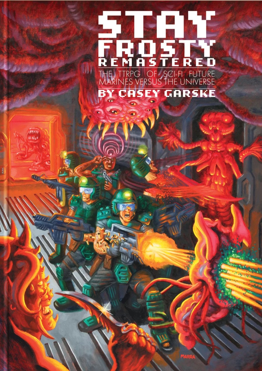 Stay Frosty Remastered je OSR hra za vesmírné mariňáky, kteří bojují s mimozemskými netvory a jinými kosmickými hrozbami a současně se musejí vypořádat s omezenými zásobami a narůstajícím stresem. Předpokládá intenzivní, akční mise situované do nepřátelských lokací ve stylu klasických dungeonů, případně point crawlů. Jde o druhou, rozšířenou edici původní hry Stay Frosty (2017).