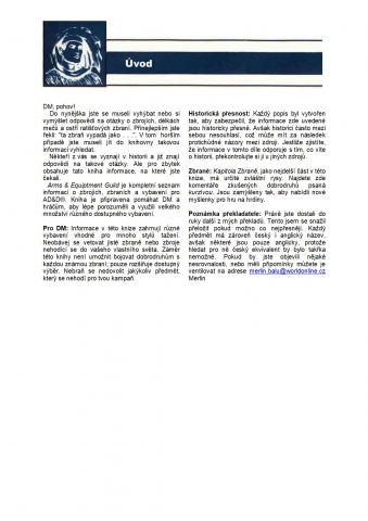 Příručka popisuje všemožné zbroje, zbraně, oblečení a jiné vybavení. Nezvyklé je, že tato kniha nepopisuje nové předměty, ale místo toho podrobněji rozebírá předměty ze základních pravidel. Konečně se dozvíte, z čeho se vyrábí ta která zbroj, ze které evropské země a z jakého století pochází onen meč, k čemu vůbec existovala válečná kladiva, a mnohem více… Zajímavé čtení pro všechny, kteří o předmětech chtějí vědět víc než jejich statistiky.