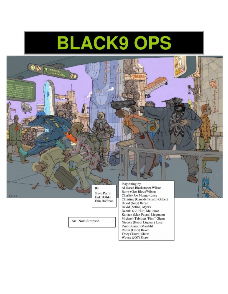 Black9 Ops je kyberpulpová hra. Můžete v ní čekat slábnoucí vlády, sílící korporace, ilimunáty, hackování a plížení do nepřátelských základen, stejně jako přestřelky, při nichž se vzduch plní olovem, intriky a zrady, a to vše v dobrodružném, lehce nasazeném duchu. Příkladem typického netypického protivníka je vedlejší výsledek výzkumu dlouhověkosti – zombie.