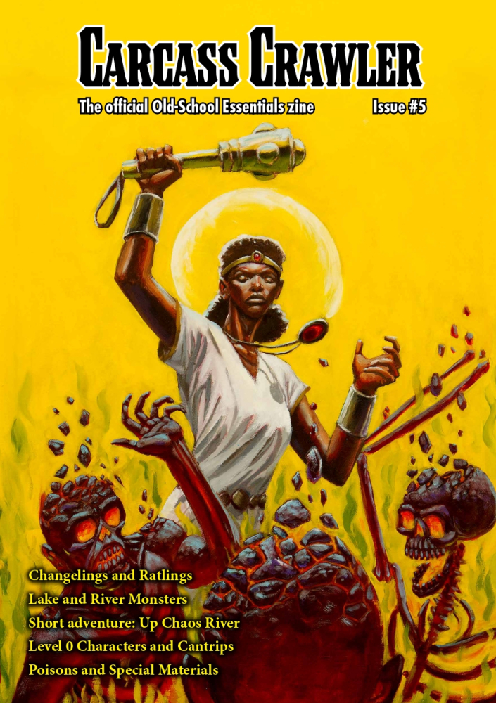 Páté číslo časopisu Carcass Crawler od Necrotic Gnome. Na 36 stranách nabízí rozšíření pro Old-School Essentials (2017), jmenovitě: