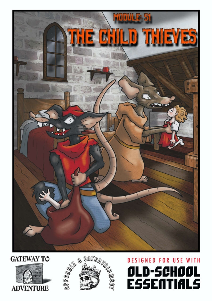 The Child Thieves je dobrodružství určené postavám na 3. až 5. úrovni v Old-School Essentials (2017) a dalších OSR hrách. Rok co rok zaplavují krysy nejchudší městskou čtvrť. A rok co rok přichází na pomoc krysař se svou kouzelnou flétnou. Ceny ale stoupají, chudí letos nemají na zaplacení, a krysař je proto prokleje. Druhého dne ráno najdou obyvatelé prázdné dětské postýlky a stopy obřích krys směřující do kanálů. Hráči se mohou vydat hledat ztracené děti do městských stok s 22 místnostmi rozloženými ve dvou podlažích. Kromě dungeonu modul obsahuje bestiář.