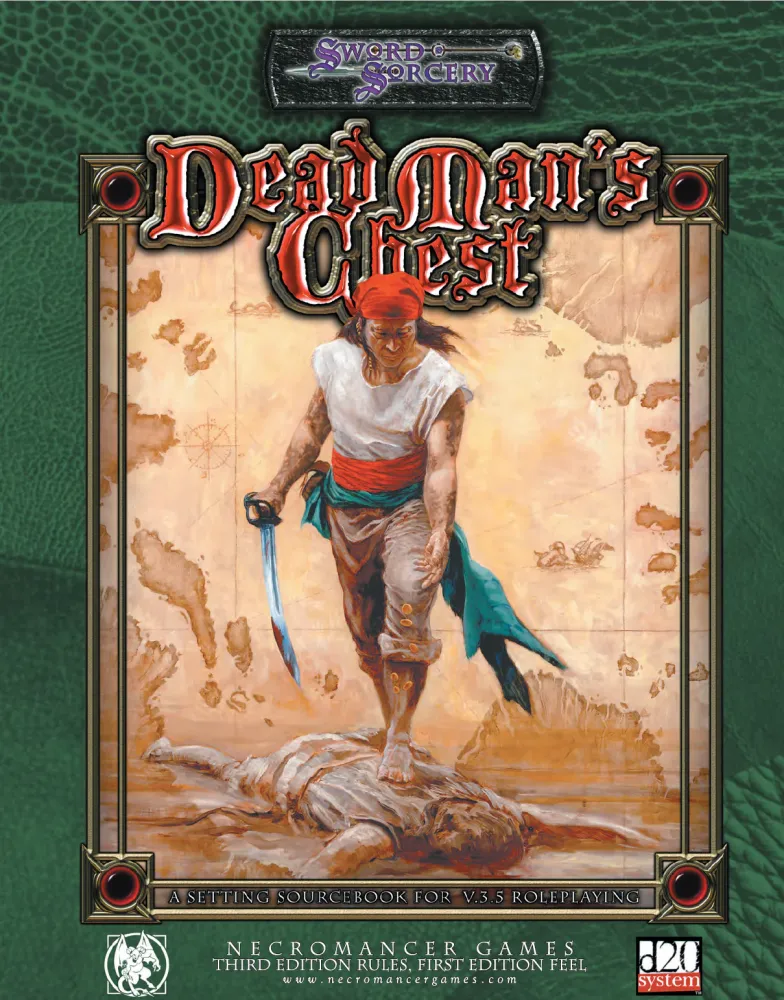 Dead Man’s Chest je 200stránková rozšiřující příručka pro hry založené na licenci d20, přinášející rozmanitá doplňující pravidla soustředěná kolem tématu pirátství a mořeplavby. Přináší například podrobná pravidla pro cestování loděmi a počasí na moři nebo pro průzkum podvodních hlubin. Hráči můžou využít nová prestižní povolání a featy s námořní tématikou nebo nová kouzla, narazit ve hře na řadu nových monster nebo najít přes 100 nových kouzelných předmětů. Součástí jsou taky tři připravená dobrodružství: