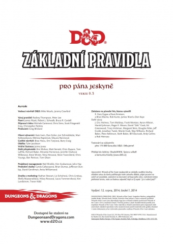 2014 | Alternativní základní pravidla | Zjednodušená, volně dostupná pravidla D&D 5e | |