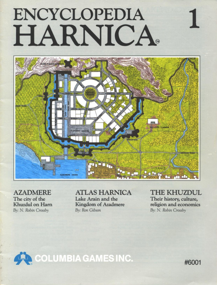 Encyclopedia Hârnica 1 je první díl šestnáctidílné série Encyclopedia Hârnica, která postupně prohlubuje popis fantasy světa Hârn. 20stránkový sešit poskytuje detailní informace o městě Azâdmez, jezeře Arain, na jehož březích leží, a království Azâdmez. Jak je pro Hârn obvyklé, popisuje lokace na úrovni jednotlivých domů, s četnými mapkami a důrazem na realistický detail. Dále se zaměřuje na historii, kulturu, náboženství a ekonomiku trpasličí rasy Khûzdul.