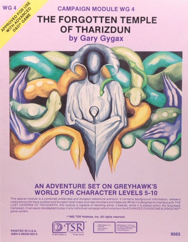 WG4: The Forgotten Temple of Tharizdun je dobrodružství pro postavy na 5. až 10. úrovni v první edici Advanced Dungeons & Dragons (1978), zasazené do světa Greyhawk. Jeho děj navazuje na předchozí dobrodružství S4: The Lost Caverns of Tsojcanth (1982). Podobně jako v něm, i tady jde o kombinaci cesty divočinou s následnou jeskyní. Gnómové pověří hrdiny vyhledáním a vybitím kmene norkerů (takoví horší goblini). Hrdinové tak putují nebezpečnou hexovou divočinou a nakonec je čeká útok na silně opevněnou tvrz, která posléze přechází v divné podsvětí – tvrz a podsvětí jsou dungeon o zhruba 50 místnostech.