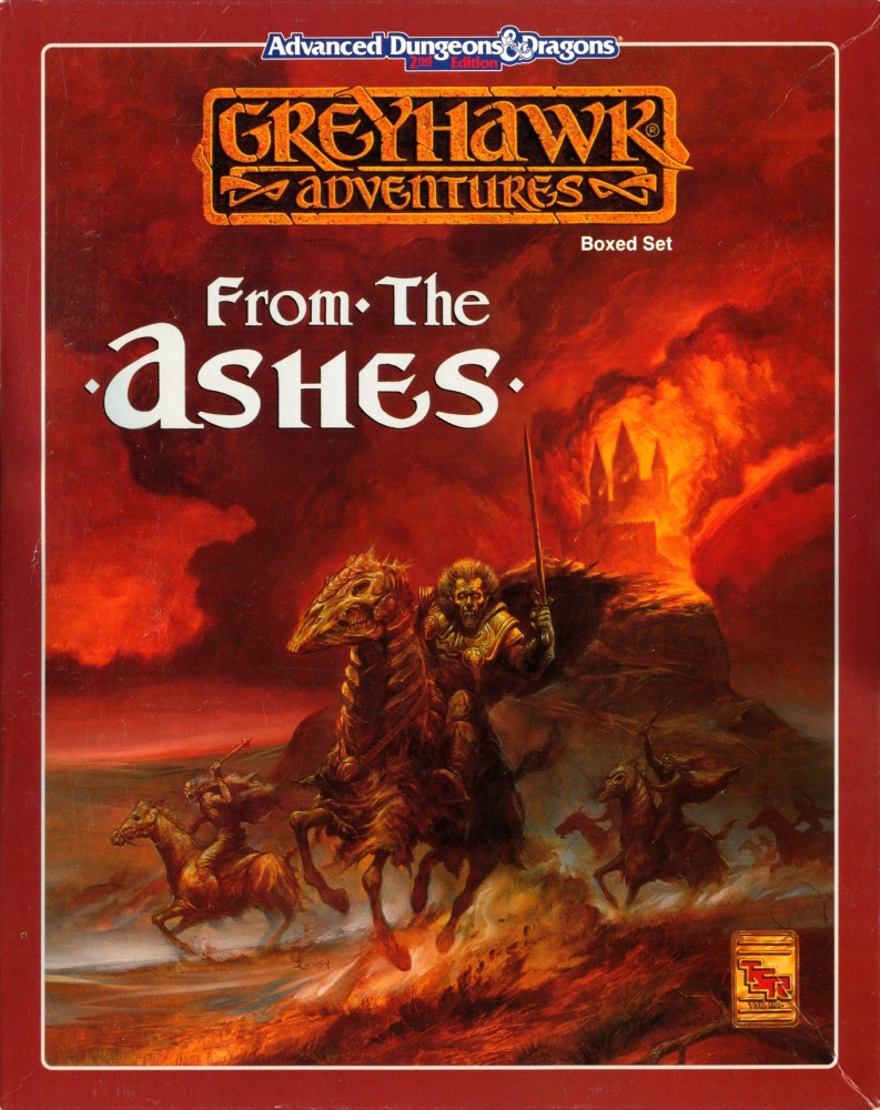 From the Ashes je krabicová sada pro druhou edici Advanced Dungeons & Dragons (1989), která představila novou podobu světa Greyhawk po výrazném rebootu, kdy byl svět zdevastován sérií válek, představených v dvojici dobrodružství WGS1: Five Shall Be One (1991) a WGS2: Howl From the North (1991). V nové podobě je Greyhawk drsnější a temnější – zatímco v předchozí podobě byl někde na pomezí mezi středověkem a brakovou fantastikou, nově si bere inspiraci z temné fantasy. Je taky dynamičtější a víc vybízí k dobrodružstvím. Krabici tvoří: