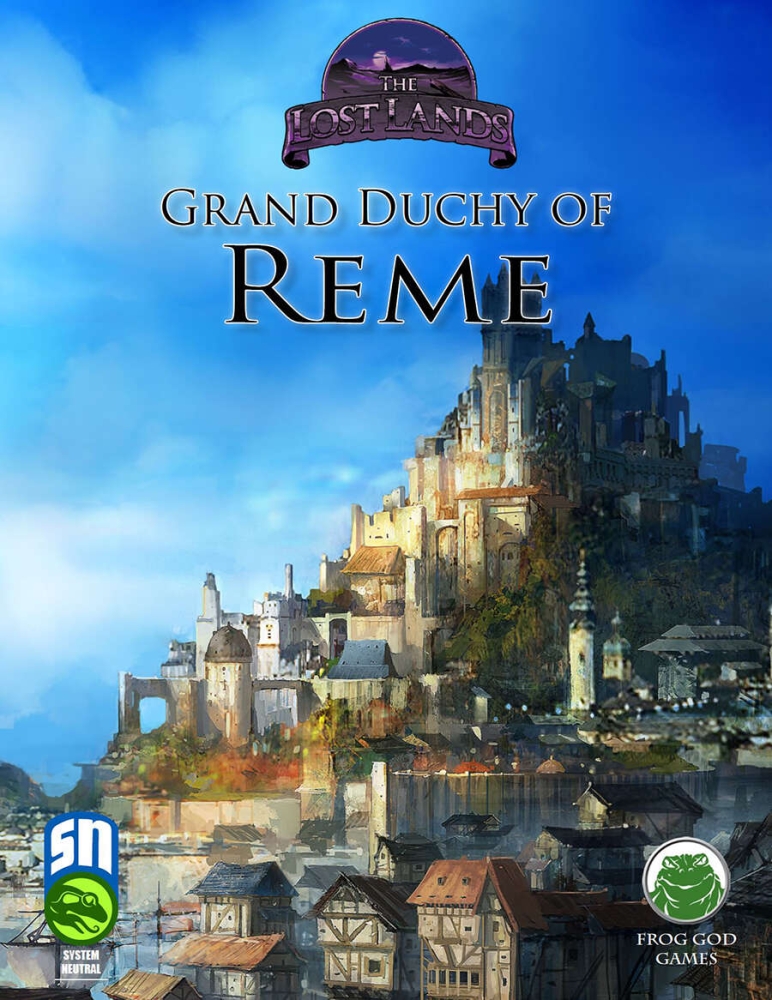 Grand Duchy of Reme od Frog God Games je 154stránková encyklopedie a místopis Velkoknížectví Reme ve světě The Lost Lands a celého okolního regionu. Reme je sice rozsáhlé, o velikosti tisíců čtverečních mil, ale většina oblasti je divoká a neobývaná. Kniha obsahuje informace o samotném městu Reme, jemu podřízených knížectví kolem, příhraničních oblastí i divočině mezi frekventovanými cestami. Každá část popisující určitou oblast se skládá z popisu historie regionu, obyvatel, vlády, obchodu, armády, hrozeb, významných měst, divočiny a jejích lokací. Kniha také obsahuje tabulky setkání pro jednotlivé oblasti.