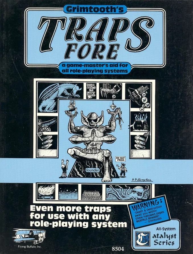 Grimtooth's Traps Fore je navzdory názvu třetí, nikoli čtvrtý, z populární řady doplňků Grimtooth's Traps, které přinášejí popisy a ilustrace různých důmyslných a především humorných pastí, smrtících strojů a pekelných mašin, včetně názorných ilustrací. Jak uvádí sama kniha: „přináší dalších víc než 100 porušení občanských práv, jaké svět s výjimkou jistých jihoamerických ,demokracií‘ a zmrzlých pustin západní Sibiře zatím neviděl“.