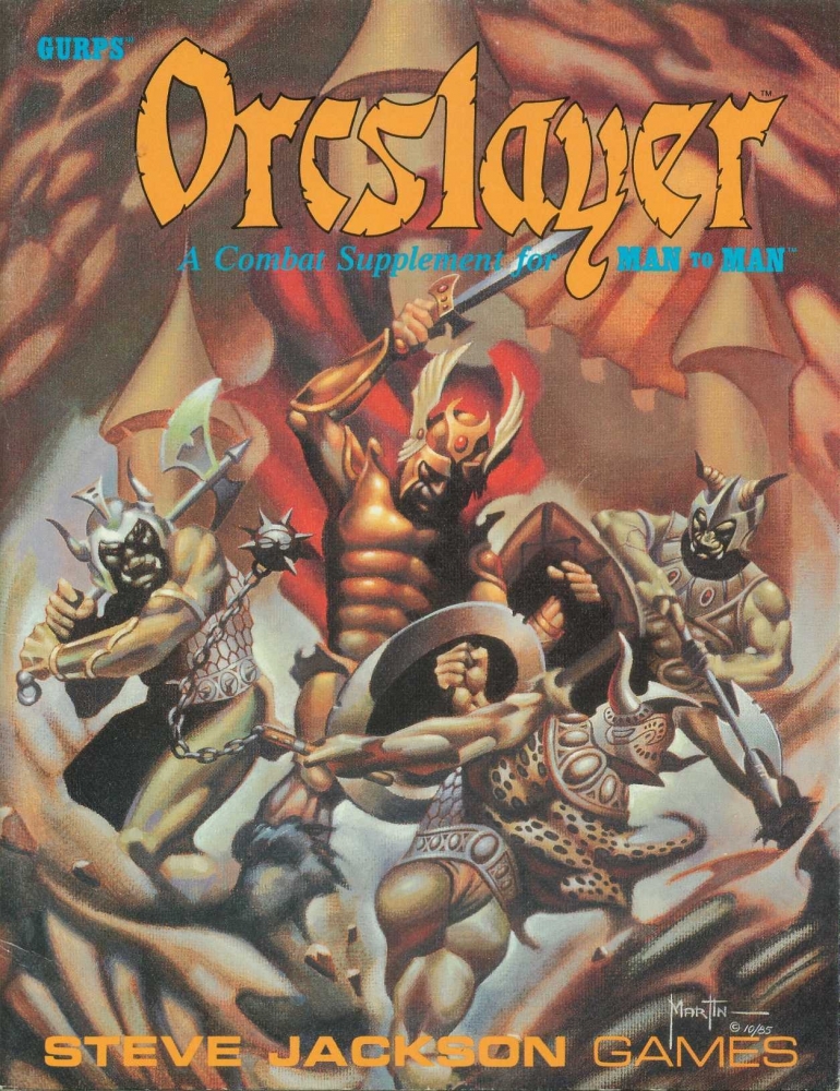 Orcslayer je první (a jediný) doplněk pro GURPS Man to Man (1985), zjednodušená pravidla hry první edice GURPS (1986), ořezaná jen na soubojový systém. Základní pravidla z Man to Man rozšiřuje tato příručka o cestování, nákup nebojového vybavení, náhodná setkání a tabulku reakcí cizích postav. Navíc obsahuje několik hexových map pro odehrání scénářů a deníky důležitých cizích postav a protivníků.