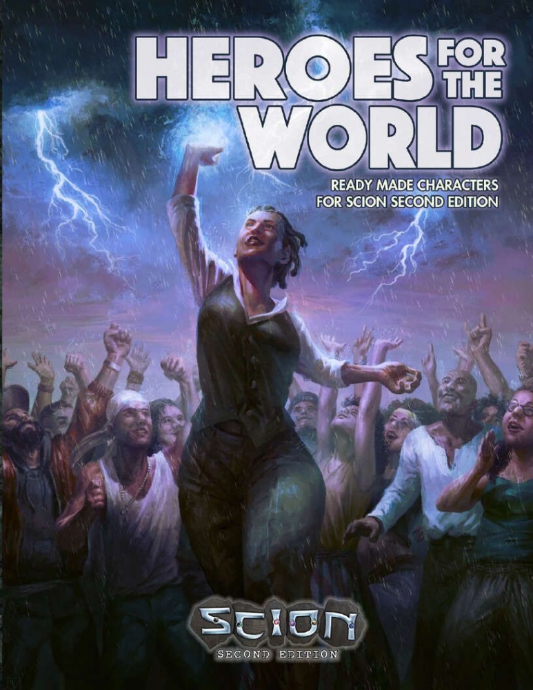 Heroes for the World, s podtitulem Ready Made Characters for Scion Second Edition, obsahuje šest připravených postav a jejich verzi pro druhou edici Scion: Origin (2019) i Scion: Hero (2019). Ty jsou doplněny návrhy pro jejich vzájemné vztahy a interakci ve skupině a náměty pro kampaň.