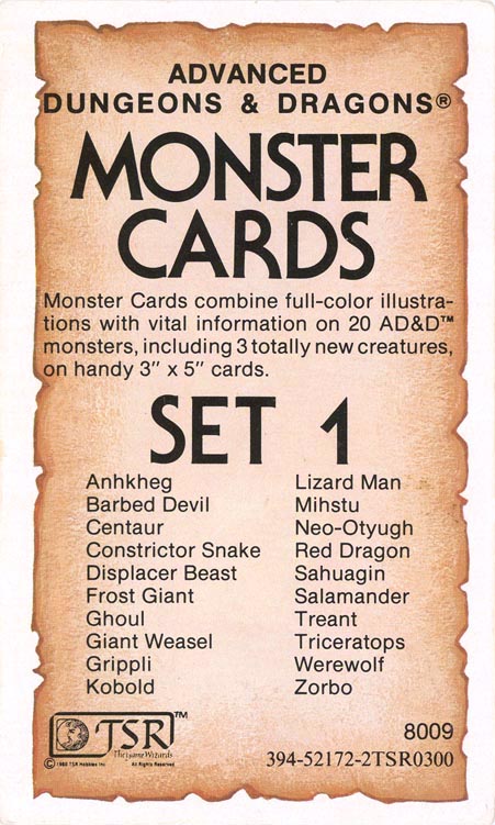 První balíček dvaceti karet nestvůr pro první edici AD&D