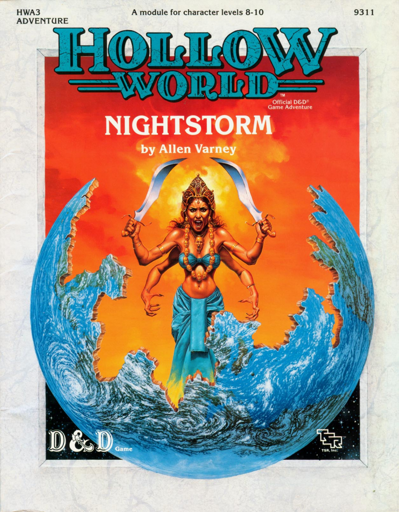 HWA3: Nightstorm je 64stránkové dobrodružství určené postavám na 8. až 10. úrovni v Basic Dungeons & Dragons, třetí a poslední ze série HWA – Hollow World Adventures. Postavy v dobrodružství o 10 kapitolách navštíví Dharsatru, největší město mughalskou Indií inspirované země Šahdžapur. Budou muset získat několik unikátních magických předmětů, proniknout do chrámu a ubránit ho před útočníky a nakonec se vypořádat s hlavním antagonistou celé série, nesmrtelným Thanatem. Až na samotný závěr má dobrodružství poměrně volnou strukturu, tvoří ho především události a úkoly bez pevného pořadí.