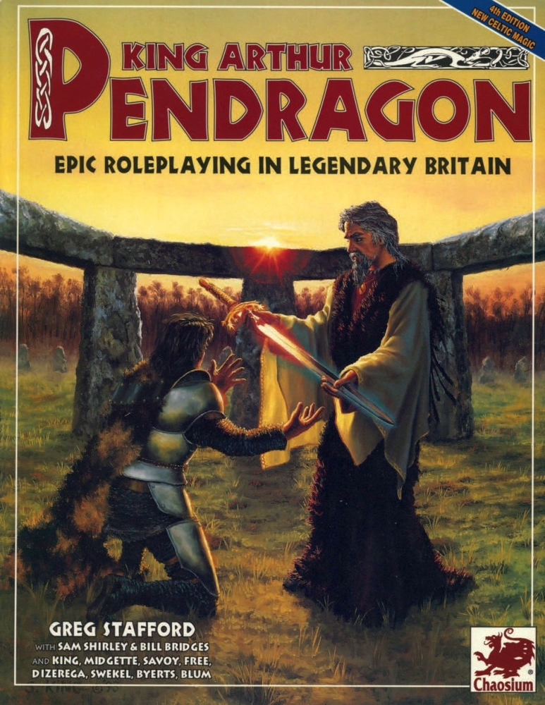 - King Arthur Pendragon; základní příručka, 4e (1993): Identická základní pravidla jako ve třetí edici, ale přímo do textu základní příručky je zakomponováno rozšíření Knights Adventurous (1990), které rozšiřuje možnosti tvorby postav. Novinkou je přidání pravidel magie – jde o jedinou variantu Pendragonu obsahující magii dostupnou hráčským postavám.