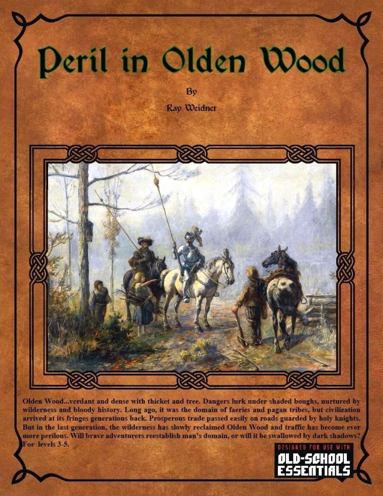 Peril in Olden Wood je 90stránkové dobrodružství pro postavy na 3. až 5. úrovni v Old-School Essentials (2017). Jedná se o sandboxový hexcrawl ve starém hvozdu, ve kterém přežívají zbytky pohanské víry, elfové, brutální koboldi a probíhá tu konflikt církve s Chaosem. Dobrodružství má temně pohádkový nádech.