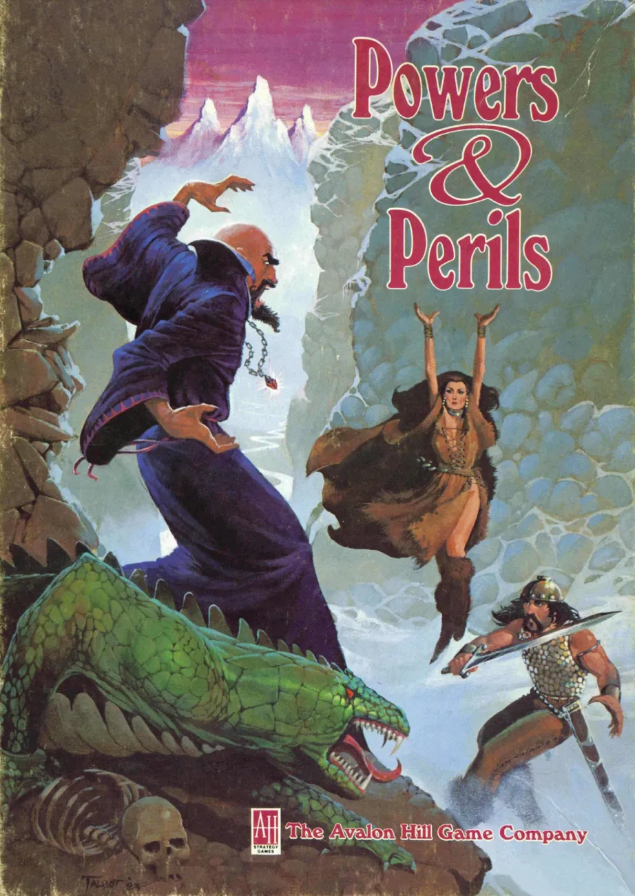 Powers & Perils je generická dobrodružná fantasy hra, ve které hráči prozkoumávají bájný svět později pojmenovaný „Perilous Lands“. Vydalo ji wargamingové nakladatelství Avalon Hill jako svou teprve druhou RPG hru po úspěšném James Bond 007 (1983) a šlo o propadák.
