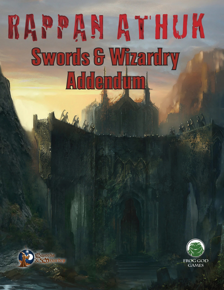 Rappan Athuk Swords & Wizardry Addendum je 68stránkové rozšíření k megadungeonu Rappan Athuk ve verzi pro Swords & Wizardry (2012). Shromažďuje veškerý nový obsah, který přidala nová verze Rappan Athuku pro pátou edici D&D (2018), a „zpětně“ ho tímto přidává i ke starší verzi megadungeonu, navíc zkonvertovaný pro Swords & Wizardry (2008). Megadungeon se tím rozšíří o další čtyři podpatra.