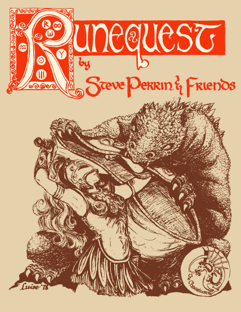 První základní příručka hry RuneQuest (1978) vyšla s jednobarevným obrázkem na obálce. Jde o první variantu hry, která byla záhy nahrazena druhou edicí základní příručky (1980) – ta přináší v zásadě jen errata a drobné úpravy. V první „edici“ se svět ještě jmenuje „Glorontha“ místo „Glorantha“ a liší se některé drobnosti pravidel, ale pořád jde o stejnou hru a materiály se dají používat bez ohledu na to, pro kterou z těchto „edic“ vyšly.