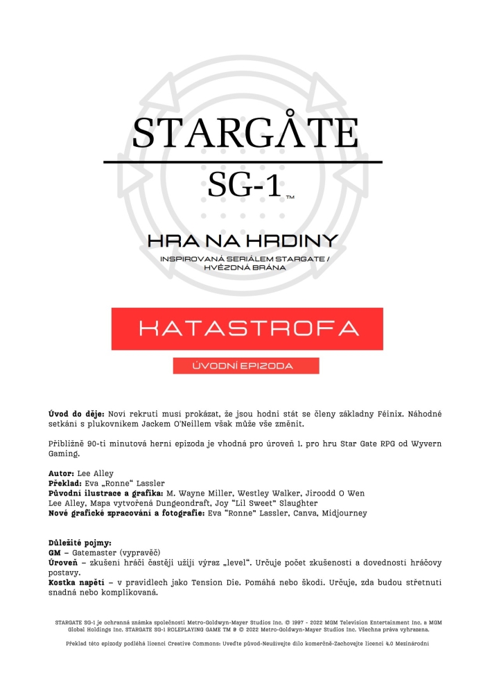 Side Mission Intro – Catastrophe (v českém překladu Úvodní epizoda – Katastrofa) je bezplatný úvodní scénář pro Stargate SG-1 Roleplaying Game (2021) ve formě bezplatného PDF. Zabere zhruba 90 minut herního času. Hráči jako noví rekruti na základně prokazují, že jsou plnohodnotnými členy týmu, když se všechno změní nečekaným setkáním s Jackem O'Neillem.