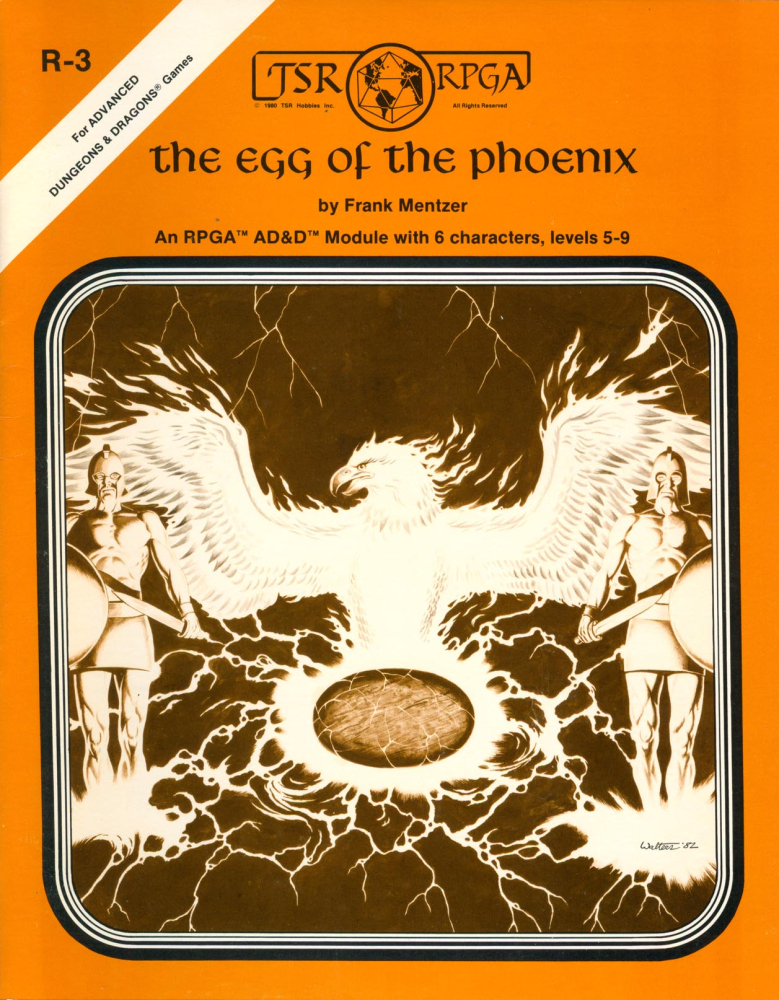 R3: The Egg of the Phoenix je 32stránkové, původně turnajové dobrodružství určené postavám na 5. až 9. úrovni v Advanced Dungeons & Dragons (1978), třetí ze série R – RPGA. Dějově je zasazeno mezi R2: The Investigation of Hydell (1982) a R4: Doc's Island (1983). Dobrodruzi mají za úkol najít interdimenzionální bránu a získat zpět ukradené Fénixovo vejce. Postupně projdou skrz jeskyni (dungeon o 11 místnostech), bezednou jámu a černý les (lineární sekvence celkem 7 setkání) až k bráně na vrcholku hory, která je přenese do negativní materiální sféry, ve které se s utkají s fénixem nebo železnými golemy o titulní artefakt.