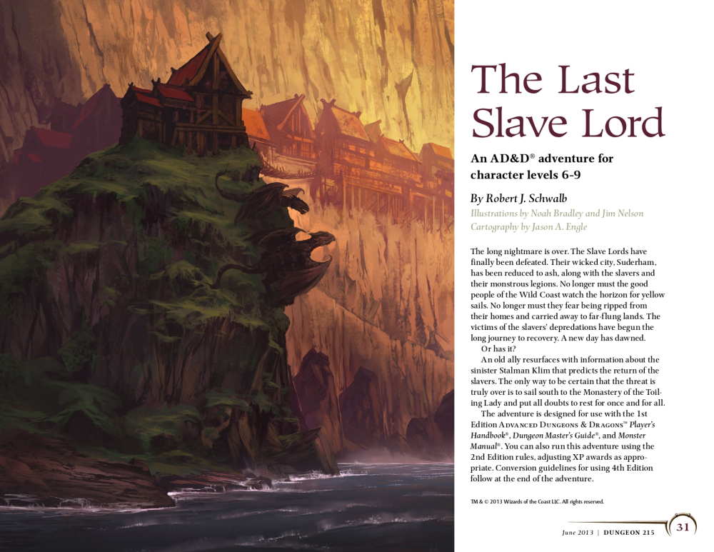 The Last Slave Lord je 29stránkové dobrodružství určené postavám na 6. až 9. úrovni v Advanced Dungeons & Dragons (1978). Jde o novou, závěrečnou část série A – Aerie of the Slave Lords, která vyšla ve 215. čísle časopisu Dungeon (2013) v souvislosti s vydáním sborníku A0–4: Against the Slave Lords (2013). Dějově dobrodružství přímo navazuje na původní závěrečný díl série, A4: In the Dungeons of the Slave Lords (1981). Dobrodruzi zkoumají klášter o 50 očíslovaných lokacích, obývaný nemrtvými a otrokáři, s cílem otrokáře jednou provždy zničit.