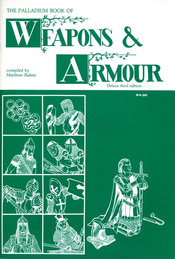 The Palladium Book of Weapons & Armour (1981) je 50stránkový univerzální doplněk pro RPG hry, součást série The Palladium Books of Weapons. Přináší historicky přesné informace o více než 600 různých zbraních a více než 35 typech zbrojí z různých historických období a kultur, od starověkých Asyřanů a Řeků přes Vikingy a Normany až po Aztéky, Číňany nebo Mongoly. Ke každé zbrani a zbroji uvádí stručný popis a ilustraci. Součástí jsou i číselné údaje ve formátu, který není určený pro žádnou konkrétní hru, ale umožňuje jednoduchou konverzi do různých systémů.