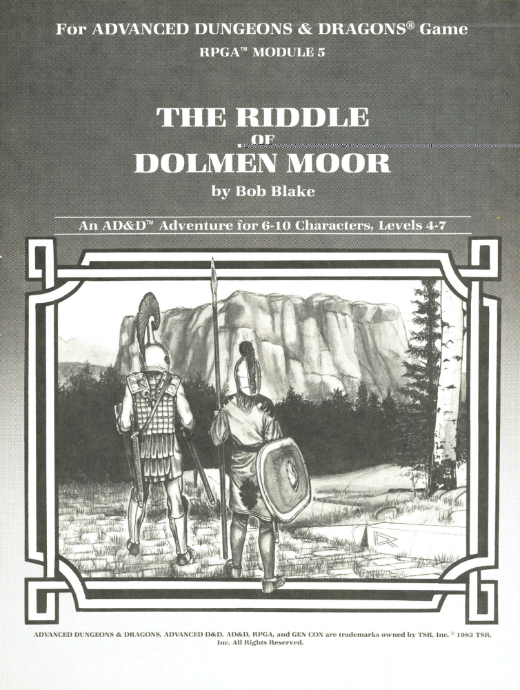 RPGA5: The Riddle of Dolmen Moor je 8stránkové, původně turnajové dobrodružství určené postavám na 4. až 7. úrovni v Advanced Dungeons & Dragons (1978), páté ze série RPGA – Role Playing Game Association. Dobrodružství nebylo publikováno samostatně, vyšlo jako součást 16. čísla zinu Polyhedron (1983). Dobrodruzi hledají hrobku legendárního krále Llywelyna na mohylami posetém vřesovišti. Jde o dobrodružství na řece a v divočině plné bojů s nemrtvými.