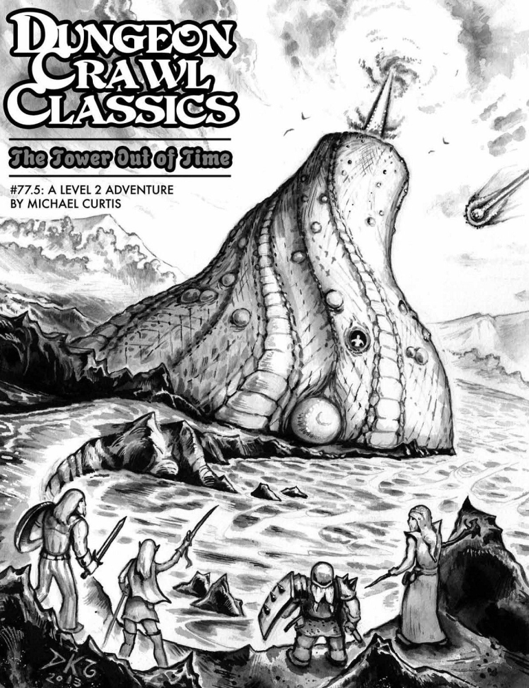 #77.5: The Tower Out of Time je dobrodružství pro postavy na 2. úrovni v Dungeon Crawl Classics (2012). Jedná se o minidungeon – věž o několika málo popsaných lokacích. Sestrojili ji prastaří inteligentní ještěři a teď přicestovala zpoza času. Součástí je i popis ještěřího boha Serboka jako nového patrona.