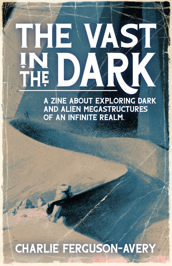 The Vast in the Dark je systémovo univerzálny zín, v ktorom nám autor predstavuje Priestor, tmavú, pieskovú pustinu plnú obrovských, brutalistických až mimozemských stavieb. Hráči sú nešťastní cestovatelia, ktorí sa ktovieprečo ocitli na tomto prekliatom mieste. Ich cieľom je prežiť a neprísť pri tom o svoje spomienky a myseľ ako väčšina tých, ktorí tu prežívajú. V lepšom prípade sa im podarí odtiaľ uniknúť.