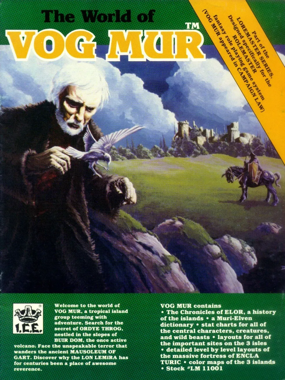 The World of Vog Mur je 32stránkový doplněk pro původní Rolemaster (1982), součást jeho rané řady Loremaster, která sdružovala popisy různých herních světů, často vzájemně nezávislých. Představuje menší herní prostředí, souostroví tvořené třemi menšími sopečnými ostrovy s jediným větším lidským městem – kompaktní prostředí nacházející se na hraně civilizace, vhodné k dobrodružnému průzkumu. Kniha představuje zdejší geografii, klimatické podmínky, unikátní rostliny a nestvůry a taky zdejší domorodé kultury včetně významných frakcí s osobností. Podrobněji popisuje jednu malou přístavní osadu a pár dobrodružných lokací rozesetých po ostrovech (např. menší pevnost, mauzoleum ve formě menšího dungeonu, ukázkové elfské sídlo).