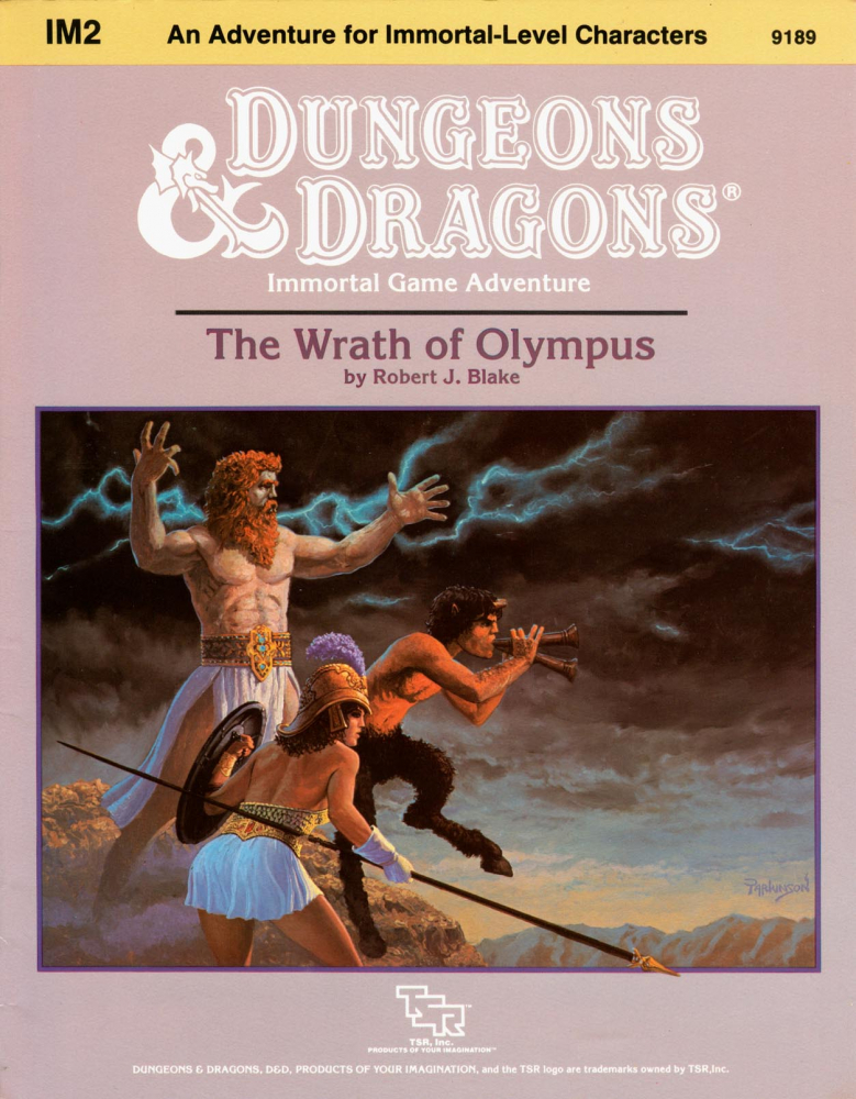 IM2: The Wrath of Olympus je 48stránkové dobrodružství určené postavám „nesmrtelných“, konkrétně „temporalům“ na první nebo druhé úrovni, v Basic Dungeons & Dragons, druhé ze série IM – Immortal. Dobrodruhy navštíví výprava nejvyšších nesmrtelných, hierarchů, a požádá je o vysvobození uvězněných olympských bohů. Dobrodruzi se proto vydají na cestu napříč sférami, nejprve za složkami nutnými k vytvoření mocného artefaktu, poté na Mystaru, kde nejprve postupně přijmou identity legendárních smrtelníků (včetně zlatého draka!) a nakonec se vydají k Olympu vysvobodit Dia, Heru a další starořecké bohy.