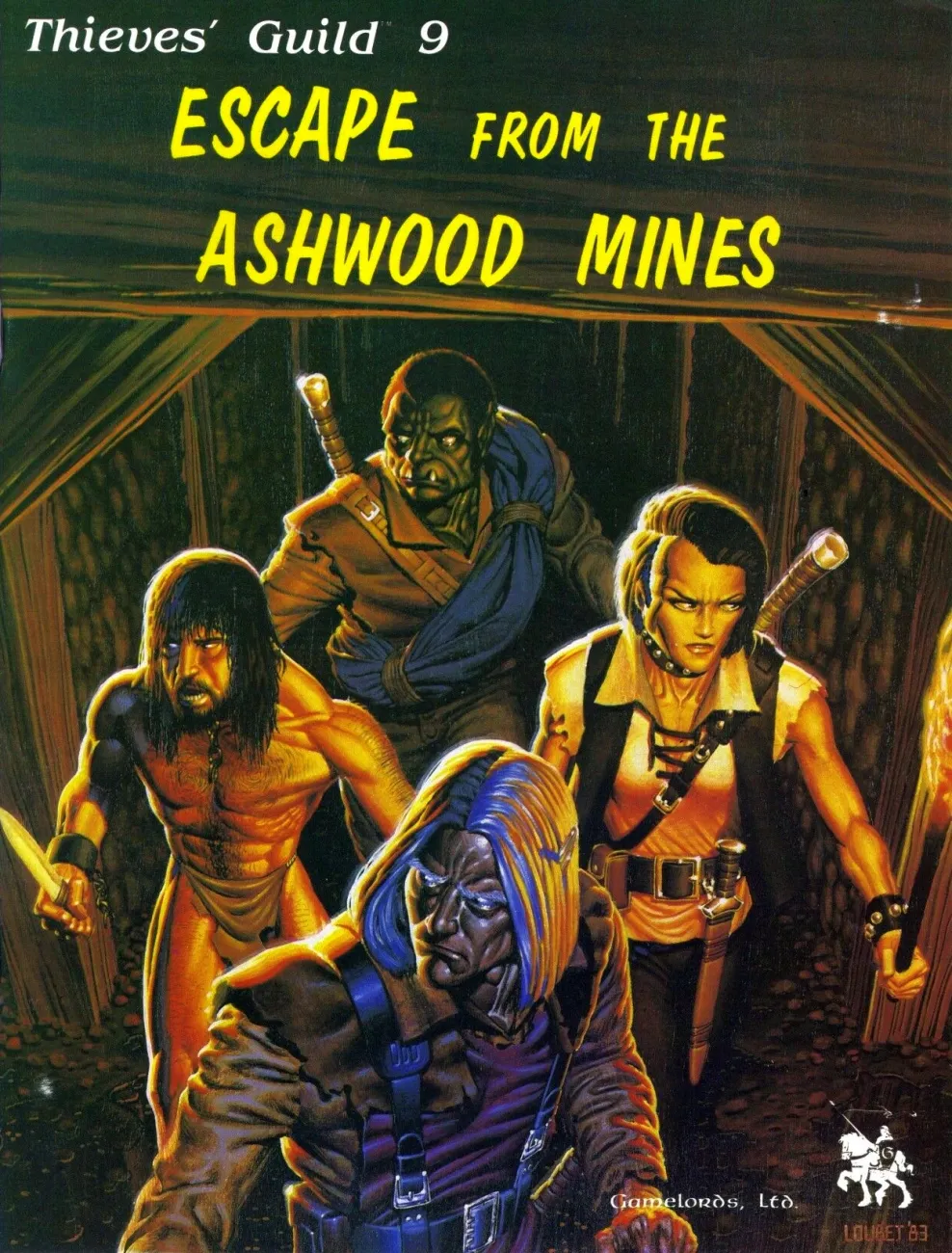 Thieves' Guild 9: Escape from the Ashwood Mines je 32stránkový sborník dvou dobrodružství pro zlodějskou hru Thieves' Guild (1980). V titulním scénáři Escape from the Ashwood Mines musí družina infiltrovat odlehlý trestanecký stříbrný důl a vysvobodit z něj důležitého šlechtice dřív, než podlehne krutým podmínkám a strážím. Druhým scénářem je pokračování a završení dobrodružství Secret of the Crystal Mountains, jehož první polovina vyšla v Thieves' Guild VIII (1983). Dobrodruzi v něm pokračují v pátrání po magických svítících krystalech, cestují začarovaným lesem a záhadným údolím – a snaží se z nich dostat ven.