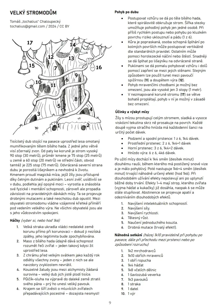 Velký stromodům je dvoustránkové bezsystémové dobrodružství vytvořené v rámci designérského jamu Dungeonová kuchyně 2023 pořádaného RPG Fórem. Dobrodruzi v něm prozkoumávají velikánský strom obývaný všelijakými mluvícími zvířaty žijícími v křehkém příměří, které může snadno být narušeno. Dobrodružství popisuje 17 lokací propojených konkrétními cestami, například trhlinami nebo tělem mrtvého obřího hada.