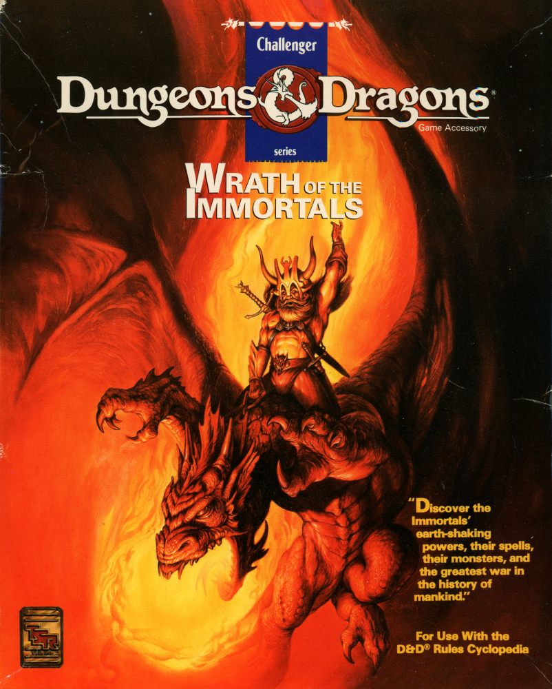 Wrath of the Immortals je krabicová sada pro Basic Dungeons & Dragons ve variantě Rules Cyclopedia (1991) s pravidly pro postavy, které přesáhly běžný rozsah úrovní – nesmrtelné. Sada navazuje na souhrnná pravidla Rules Cyclopedia (1991) a zároveň nahrazuje původní pravidla pro nesmrtelné, Immortals Rules Set (1986). Krabice obsahuje: