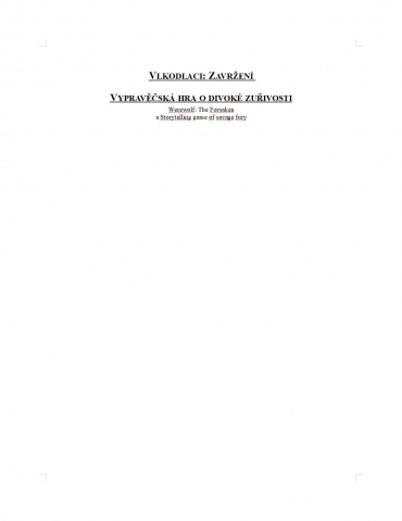 Jedna z mých oblíbených her. Bohužel se mi nikdy nepodařilo ji hrát dlouhodobě protože těch problémů, které postavy mohou řešit je strašně moc a pokud přijmeme, že jedna z hlavních metod vytváření tlaku na postavy je, že se všechno hroutí a všechno musí vlkodlaci řešit, je velmi těžké to přenést do hry.