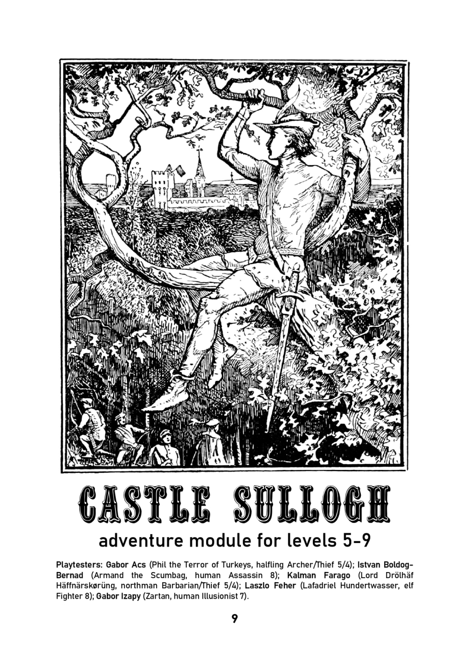Castle Sullogh je 21stránkové dobrodružství určené postavám na 5. až 9. úrovni ve hře OSRIC (2006) nebo jiných retroklonech Advanced Dungeons & Dragons (1978), zasazené do autorova světa The Isle of Erillion. Uprostřed nespoutaných lesů a bažin stojí hrad porostlý popínavými rostlinami a obklopený hlubokým vodním příkopem. V minulosti měl řadu majitelů, z nichž někteří ho stále a nedobrovolně obývají, a dnes mu vládnou tři ježibabí sestry. Ve čtyřpatrovém hradu o 55 očíslovaných lokacích v kotlích vaří rostlinné strážce, velí trollům a válejí se ve zbytcích hradních pokladnic. Ať už k dobrodruhy hradu přivede jakékoliv poslání, setkají se s různorodým prostředím a spletitou soustavou vchodů, chodeb, schodišť a teras, vhodných jak k opatrnému průzkumu, tak přímému útoku.