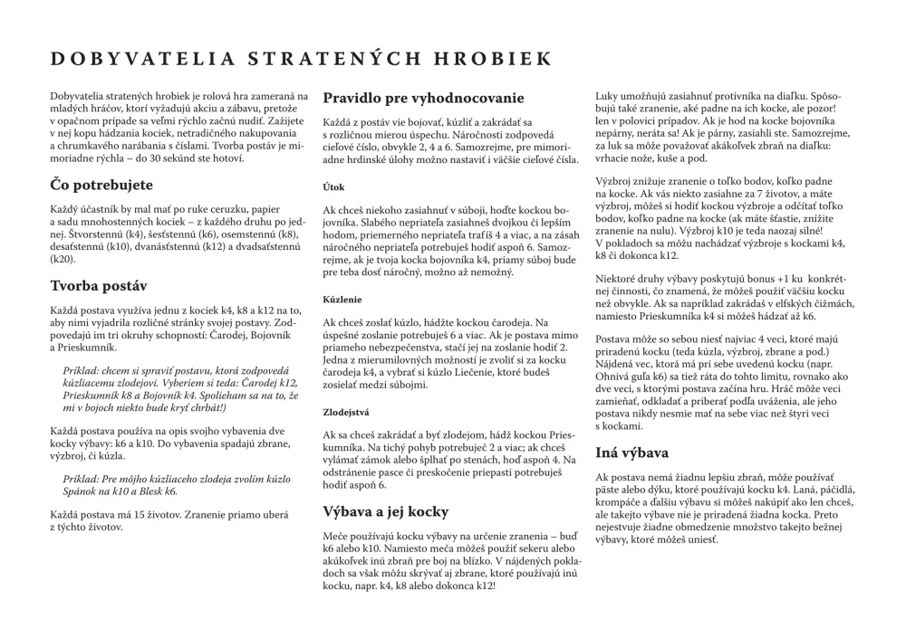 Původní pravidla minimalistické hry Dungeon Squad! (2005) mají podobu PDF dokumentu o pouhých pěti stránkách.