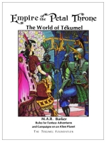 Empire of the Petal Throne je historicky jedna z prvních (v závislosti na tom, které hry přesně počítáme, zřejmě čtvrtá) publikovaných RPG her, která se od svých předchůdců liší především tím, že je jako první RPG zasazená do konkrétního, detailně popsaného světa – tím je Tékumel, mimozemská planeta kdysi teraformovaná mimozemšťany do podoby luxusního letoviska. Ovšem kosmické kataklyzma na ní uvěznilo lidi i mimozemské útočníky z dávných časů. Dnes jde o nehostinný svět s jedovatou faunou i flórou a inteligentními nebezpečnými domorodými rasami. Lidstvo a jeho spojenci zápasí o přežití jen za pomoci technologií na úrovni středověku… a magie.