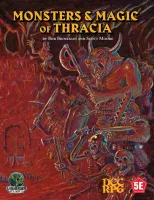 Monsters & Magic of Thracia je 40stránkový doplněk opatřený dvojími herními statistikami – pro Dungeon Crawl Classics (DCC) (2012) a pátou edici Dungeons & Dragons (2014). Jde o sborník více než 20 nových nestvůr inspirovaných dobrodružstvím Caverns of Thracia pro DCC (2025), respektive Caverns of Thracia pro D&D 5e (2025). Noví netvoři jako okřídlení hadi aramoiani, žlučoví draci nebo hippokentauři jsou vhodní pro vložení do širší kampaně okolo Thracie, ale i jiných her. Posledních pár stránek nabízí jako bonus i 10 nových magických předmětů.