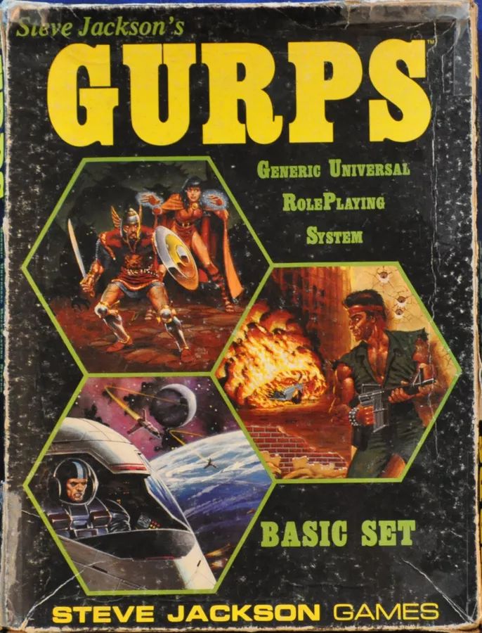 1. edice GURPS vyšla v roce 1986 jako krabicový set 2 stručných příruček (tvorba postavy, pravidla), 2 ukázkových dobrodružství (gamebookové pro 1 hráče, skupinové), brožurky s tabulkami a přehledy a několika archy kartonových figurek a žetonů výbavy. Pravidla i celkový koncept vycházely z dřívější Jacksonovy hry The Fantasy Trip (1977). Pravidla pro boj byla původně vydána samostatně jako hra Man to Man (1985). V základní krabicové sadě chyběla pravidla pro magii – objevila se až v doplňku GURPS Fantasy (1986), vydaném ve stejném roce.