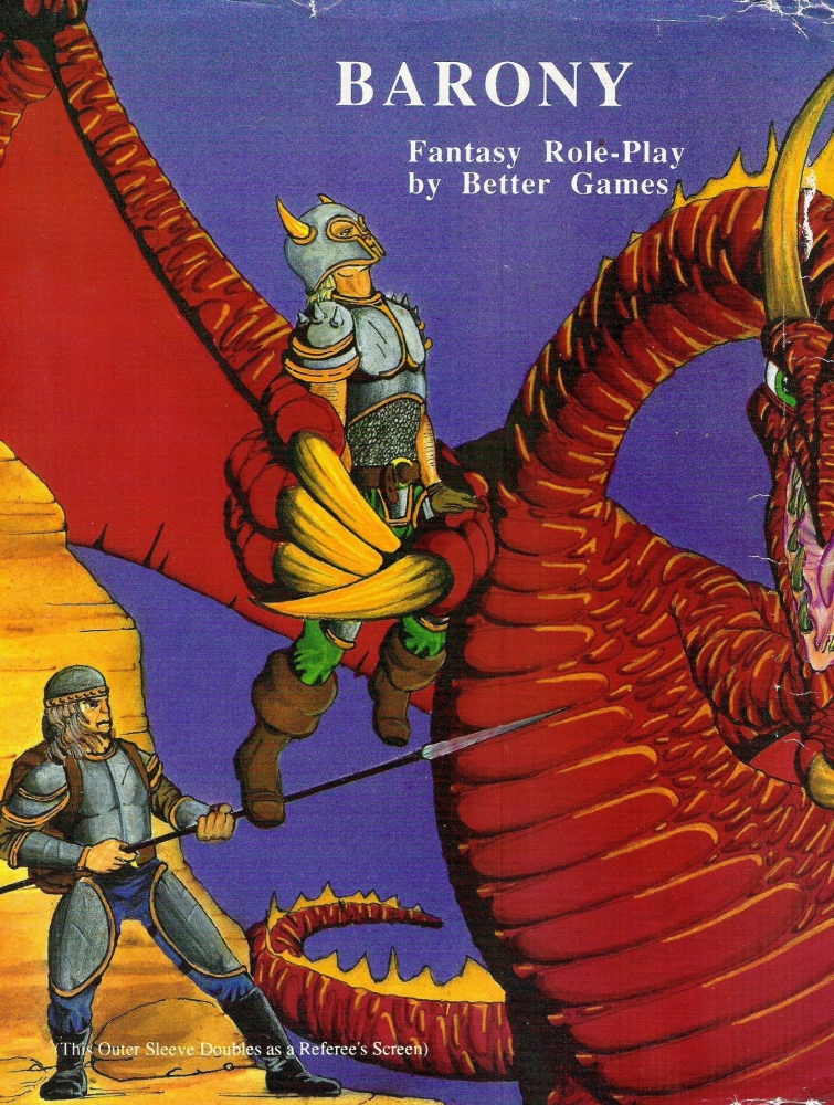 Ve svých počátcích se hra jmenovala Conrad's Fantasy a předběžné verze byly pod tímto názvem distribuovány na conech. Do širší distribuce šla ale v krabicové verzi přejmenované na Barony. Krabice obsahuje tři sešity, přičemž Conrad's Fantasy (42 stran) je sešit základních pravidel. Druhý sešit (39 stran) představil systém pro tvorbu scénářů, třetí (52 stran) systém pro tvorbu setkání – oba k tomu používají tarotové karty.
